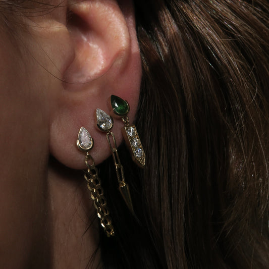 A sustainably grown pear diamond seamlessly attached to a section of cuban link chain. The chain provides some movement while the pear shape diamonds flash their brilliance.